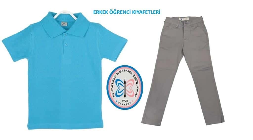 - Erkek Öğrenciler İçin; Turkuaz Mavi Tişört, Gri Pantolon