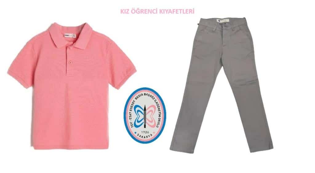- Kız Öğrenciler İçin; Pembe Tişört, Gri Pantolon